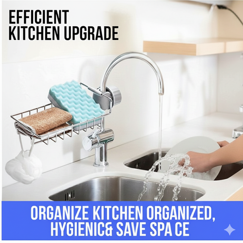 Kitchen Sink Faucet Organizer – Space-Saving Sponge & Soap Holder | Hygienic Sink Rack